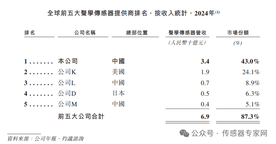 MEMS聲學(xué)傳感器:中國(guó)廠(chǎng)商合計(jì)占全球57%,最高企業(yè)排名第 1