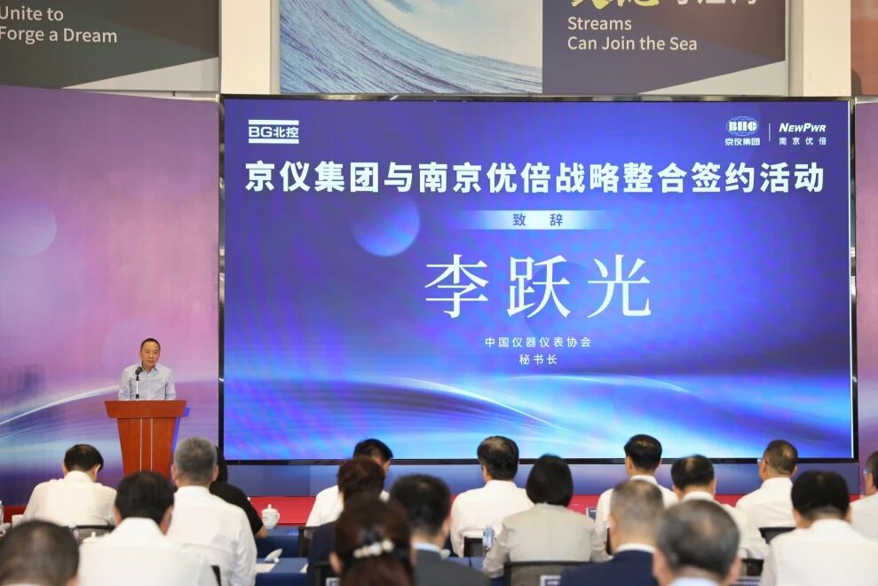在北控集團(tuán)、江寧區(qū)及江寧開發(fā)區(qū)有關(guān)領(lǐng)導(dǎo),中國儀表儀表學(xué)會、協(xié)會,儀綜所,清華大學(xué)精密儀器系,上海自動化院,南陽防爆所,中國石油和化工自控專委會,國標(biāo)委TC124\SC2等行業(yè)專家,康吉森、科遠(yuǎn)智慧、菲尼克斯和天康集團(tuán)等國內(nèi)儀器儀表行業(yè)重點企業(yè)負(fù)責(zé)人共同見證下,京儀集團(tuán)與南京優(yōu)倍完成戰(zhàn)略整合簽約。