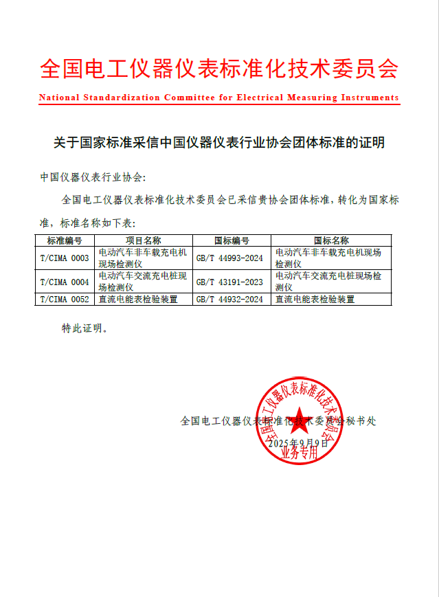 9月,全國(guó)電工儀器儀表標(biāo)準(zhǔn)化技術(shù)委員會(huì)給協(xié)會(huì)發(fā)來(lái)證明文件,協(xié)會(huì)的3項(xiàng)團(tuán)體標(biāo)準(zhǔn)已被國(guó)標(biāo)委采信,正式轉(zhuǎn)化為國(guó)家標(biāo)準(zhǔn)。
