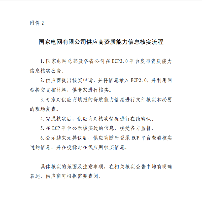 附件2.國(guó)家電網(wǎng)有限公司供應(yīng)商資質(zhì)能力信息核實(shí)流程如需獲取更多詳細(xì)內(nèi)容,請(qǐng)登入電子商務(wù)平臺(tái)