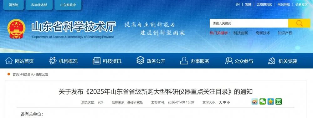 關(guān)于發(fā)布《2025年山東省省級新購大型科研儀器重點(diǎn)關(guān)注目錄》的通知