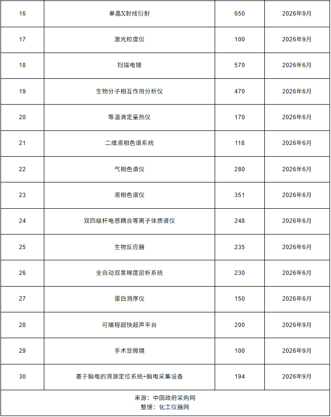 近日,南京醫科大學發布2026年2月(第2批)政府采購意向公告,計劃采購毛細管電泳色譜儀、測序儀、便攜式近紅外腦成像系統、激光共聚焦顯微鏡、蛋白檢測分析儀、X射線粉末衍射儀等儀器設備,總預算9364萬元,預計采購時間2026年6月~9月。